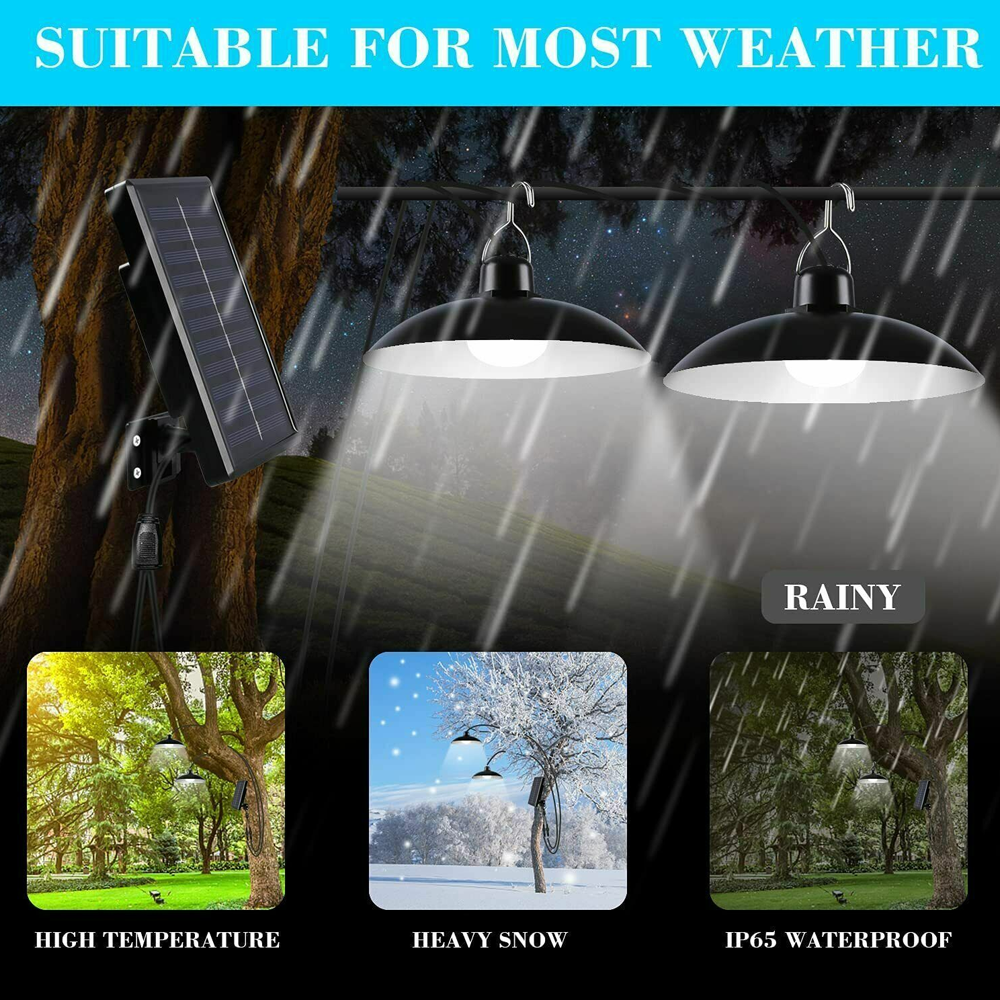 These solar pendant lights are wonderful. The double heads light up a large area, and the solar charging is reliable. They’re also very easy to install and maintain.